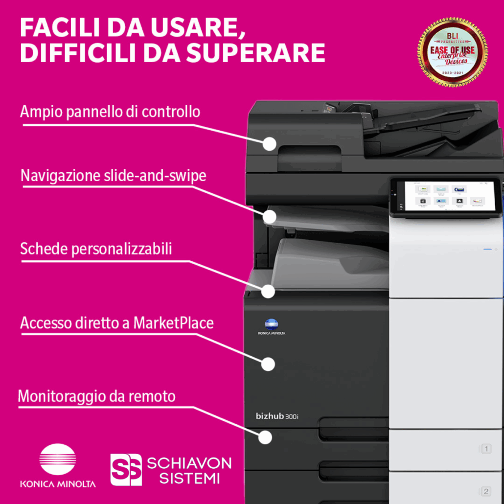 Le stampanti multifunzione Bizhub di Konica Minolta, distribuite da Schiavon Sistemi, rispondono a questa esigenza con un approccio focalizzato sulla user experience e sulla continuità operativa.